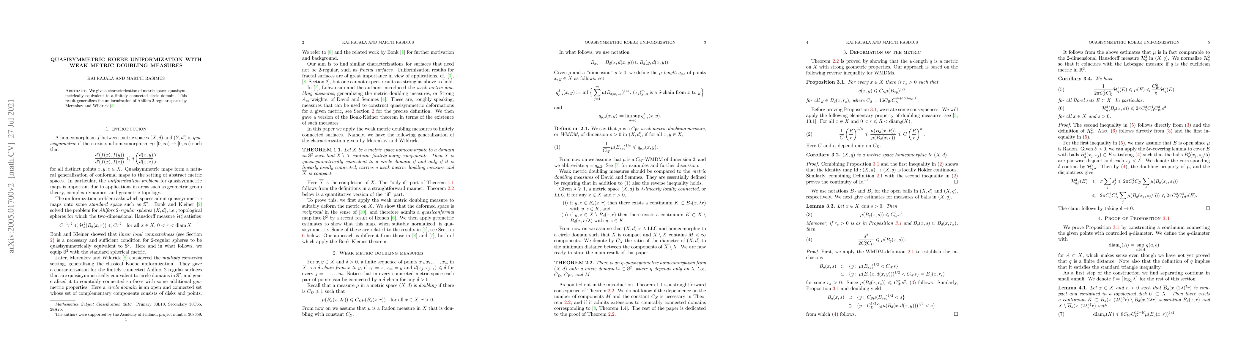 Summary: This paper characterizes metric spaces quasisymmetrically equivalent to finitely connected circle domains, extending the uniformization results for Ahlfors 2-regular spaces by incorporating weak metric doubling measures.