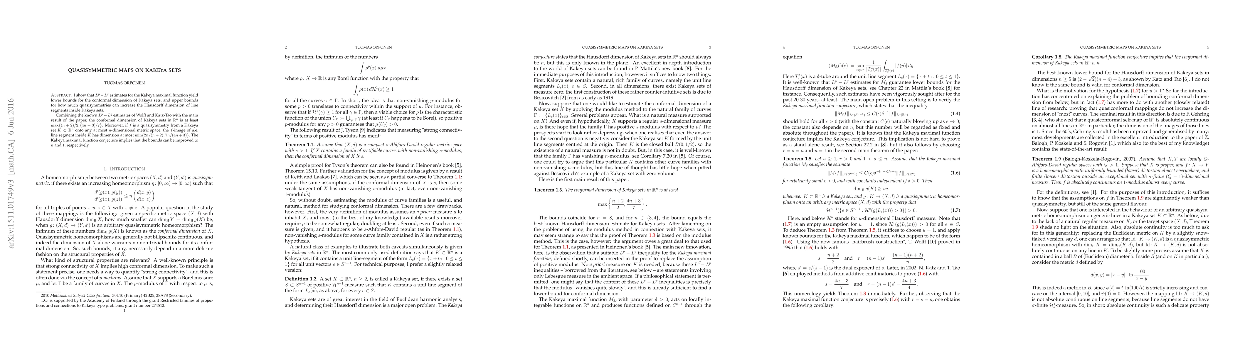 This paper establishes $L^{p}-L^{q}$ estimates for the Kakeya maximal function, showing that they provide lower bounds for the conformal dimension of Kakeya sets and upper bounds for quasisymmetries' impact on the Hausdorff dimension of line segments within these sets. The results suggest that the conformal dimension is at least $\max\{(n + 2)/2,(4n + 3)/7\}$, and quasisymmetries can increase the Hausdorff dimension by at most $\min\{2n/(n + 2),7n/(4n + 3)\}$.