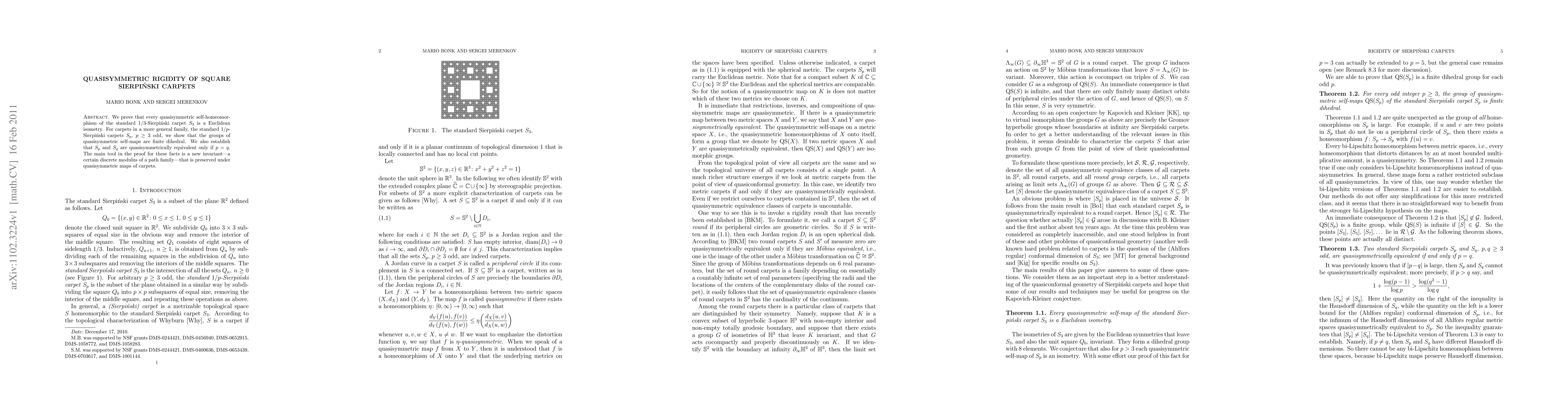 The research proves that quasisymmetric self-homeomorphisms of the standard 1/3-Sierpinski carpet are Euclidean isometries. For broader Sierpinski carpets, the study shows that their quasisymmetric self-maps form finite dihedral groups, and establishes that such carpets are quasisymmetrically equivalent only if their parameters are equal.