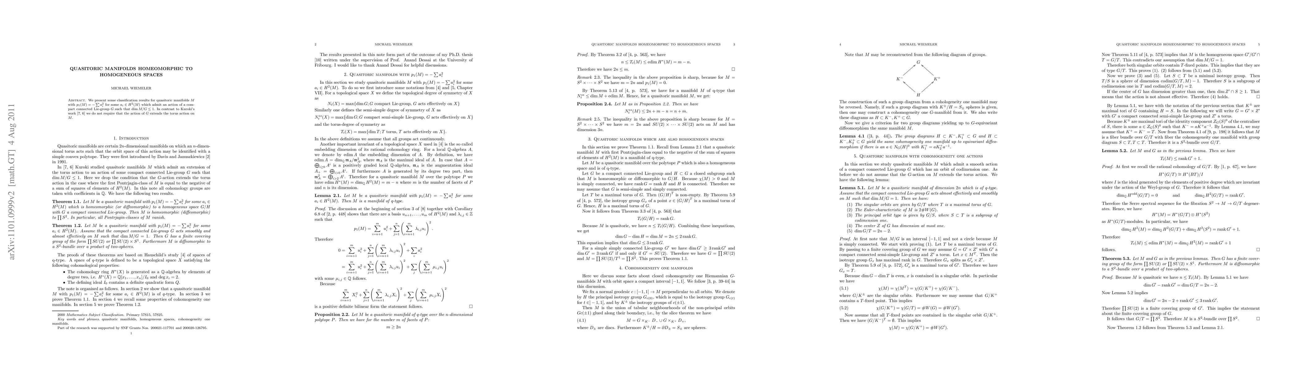 We present some classification results for quasitoric manifolds (M) with (p_1(M)=-\sum a_i^2) for some (a_i\in H^2(M)) which admit an action of a compact connected Lie-group (G) such that (\dim M/G \leq 1). In contrast to Kuroki's work we do not require that the action of (G) extends the torus action on (M).