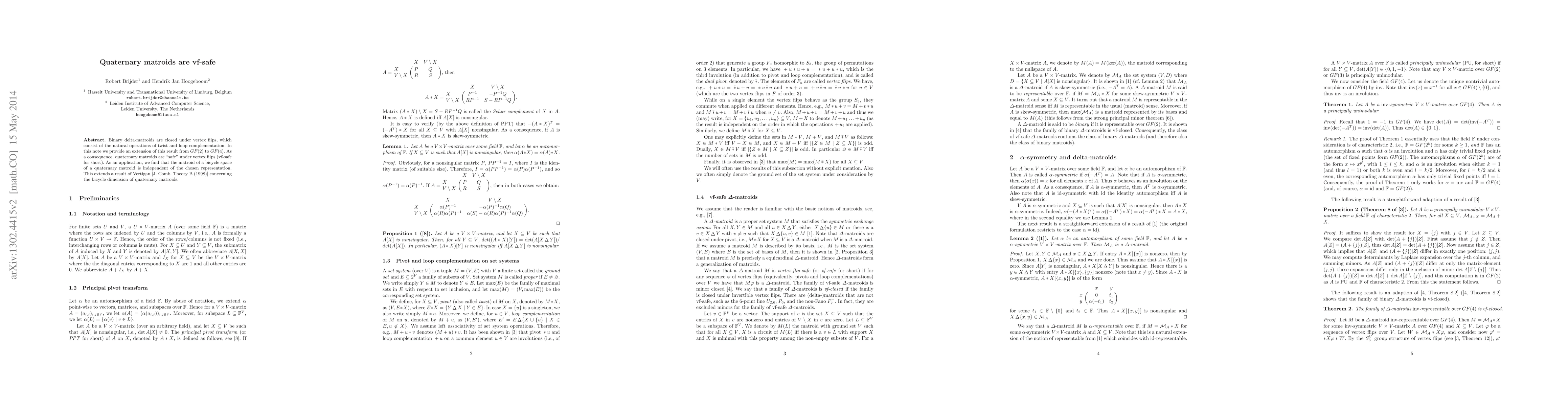 Binary delta-matroids are closed under vertex flips, which consist of the natural operations of twist and loop complementation. In this note we provide an extension of this result from GF(2) to GF(4). As a consequence, quaternary matroids are "safe" under vertex flips (vf-safe for short). As an application, we find that the matroid of a bicycle space of a quaternary matroid is independent of the chosen representation. This extends a result of Vertigan [J. Comb. Theory B (1998)] concerning the bicycle dimension of quaternary matroids.