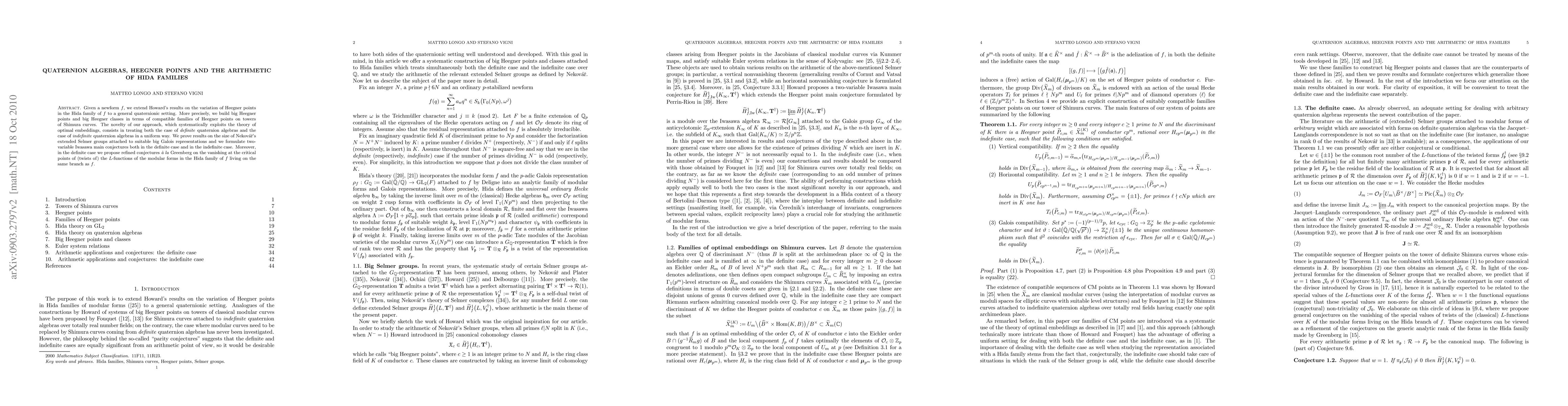 This paper extends Howard's results on Heegner points in Hida families to a quaternionic setting, constructing big Heegner points and classes for both definite and indefinite quaternion algebras. It also formulates two-variable Iwasawa main conjectures and refined Greenberg-like conjectures for the definite case.