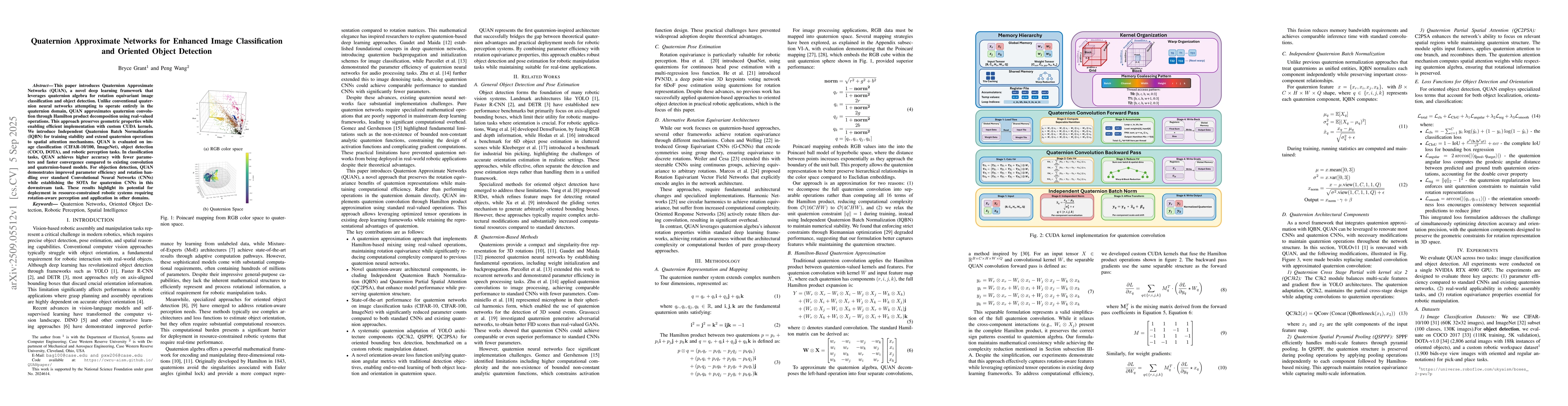 This paper introduces Quaternion Approximate Networks (QUAN), a novel deep learning framework that leverages quaternion algebra for rotation equivariant image classification and object detection. Unlike conventional quaternion neural networks attempting to operate entirely in the quaternion domain, QUAN approximates quaternion convolution through Hamilton product decomposition using real-valued operations. This approach preserves geometric properties while enabling efficient implementation with custom CUDA kernels. We introduce Independent Quaternion Batch Normalization (IQBN) for training stability and extend quaternion operations to spatial attention mechanisms. QUAN is evaluated on image classification (CIFAR-10/100, ImageNet), object detection (COCO, DOTA), and robotic perception tasks. In classification tasks, QUAN achieves higher accuracy with fewer parameters and faster convergence compared to existing convolution and quaternion-based models. For objection detection, QUAN demonstrates improved parameter efficiency and rotation handling over standard Convolutional Neural Networks (CNNs) while establishing the SOTA for quaternion CNNs in this downstream task. These results highlight its potential for deployment in resource-constrained robotic systems requiring rotation-aware perception and application in other domains.