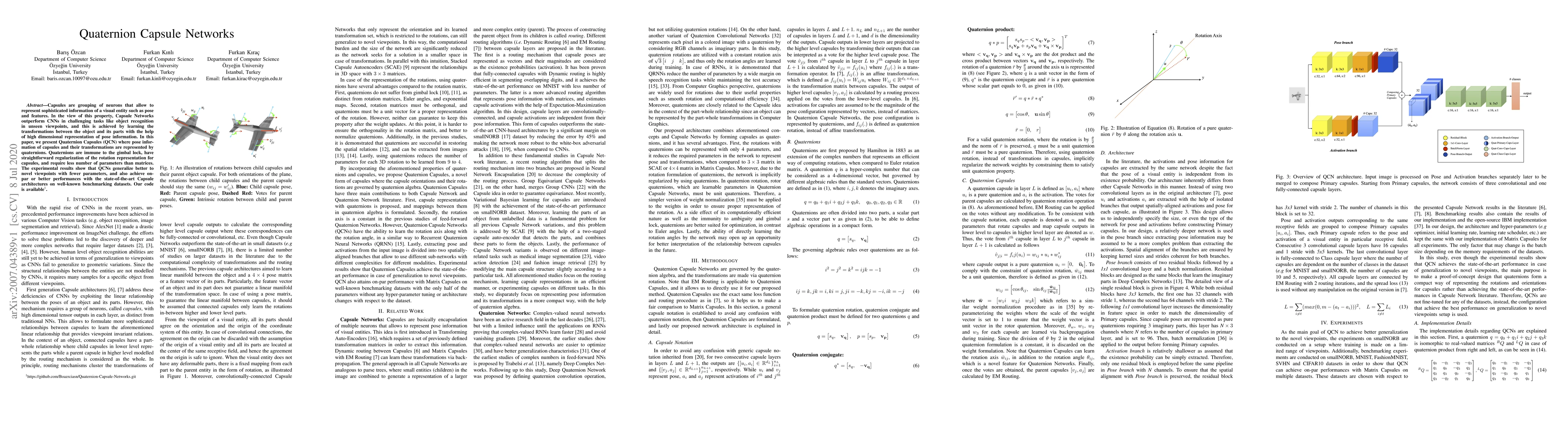 This paper introduces Quaternion Capsule Networks, which represent pose information with quaternions to improve object recognition in unseen viewpoints. It shows that QCNs generalize better to new views with fewer parameters than state-of-the-art Capsule architectures.