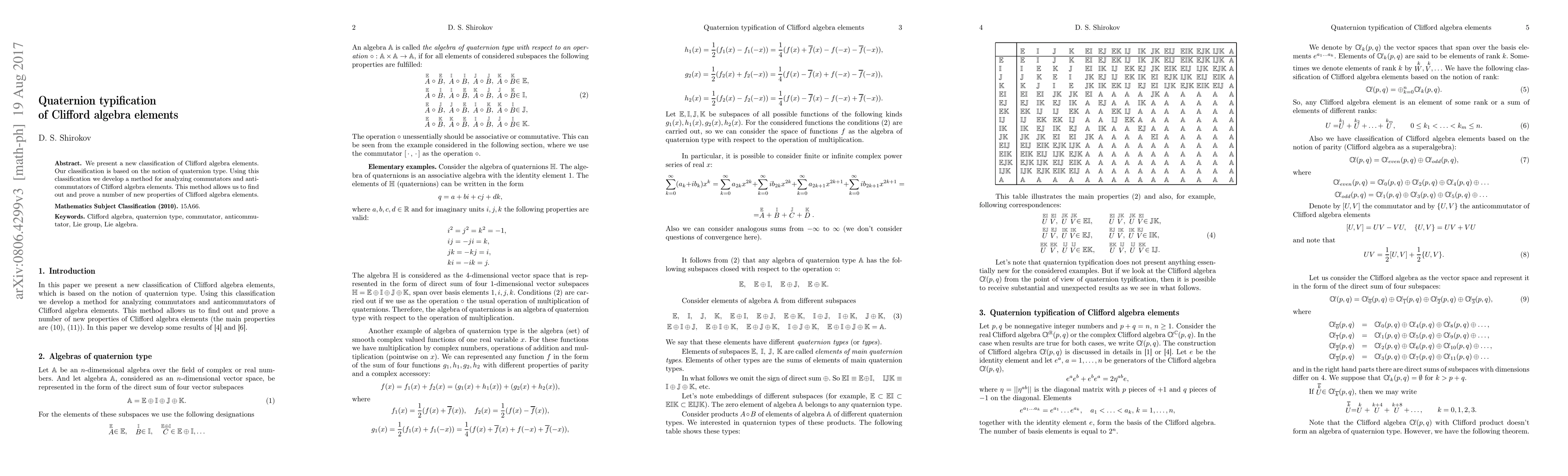 The paper introduces a novel classification of Clifford algebra elements based on quaternion type, and develops a method for analyzing commutators and anticommutators, uncovering several new properties of these elements.