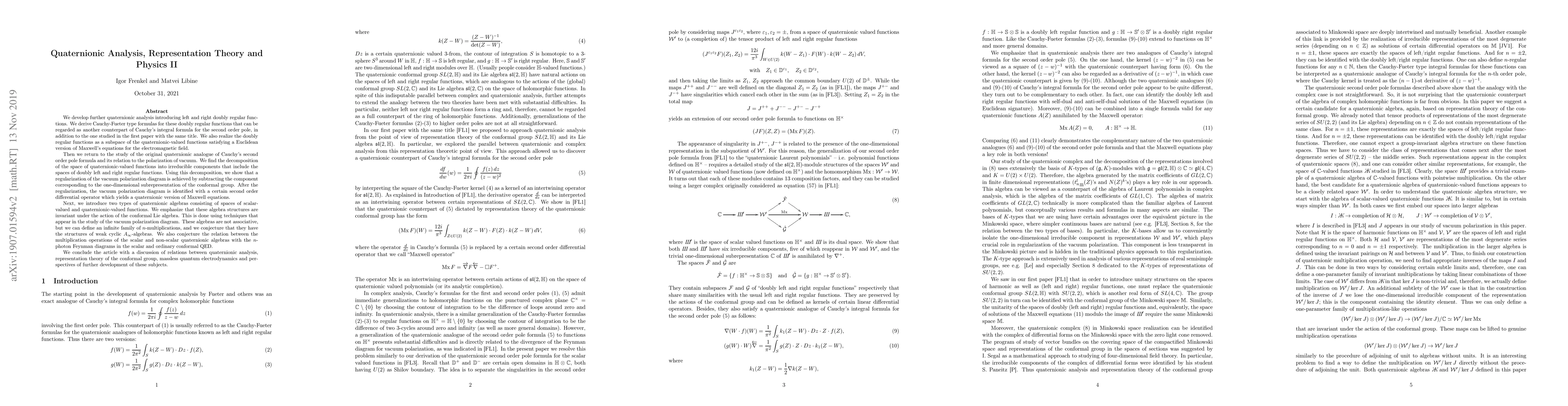 We develop further quaternionic analysis introducing left and right doubly regular functions. We derive Cauchy-Fueter type formulas for these doubly regular functions that can be regarded as another counterpart of Cauchy's integral formula for the second order pole, in addition to the one studied in the first paper with the same title. We also realize the doubly regular functions as a subspace of the quaternionic-valued functions satisfying a Euclidean version of Maxwell's equations for the electromagnetic field. Then we return to the study of the original quaternionic analogue of Cauchy's second order pole formula and its relation to the polarization of vacuum. We find the decomposition of the space of quaternionic-valued functions into irreducible components that include the spaces of doubly left and right regular functions. Using this decomposition, we show that a regularization of the vacuum polarization diagram is achieved by subtracting the component corresponding to the one-dimensional subrepresentation of the conformal group. After the regularization, the vacuum polarization diagram is identified with a certain second order differential operator which yields a quaternionic version of Maxwell equations. Next, we introduce two types of quaternionic algebras consisting of spaces of scalar-valued and quaternionic-valued functions. We emphasize that these algebra structures are invariant under the action of the conformal Lie algebra. This uses techniques from our study of the vacuum polarization diagram. These algebras are not associative, but we can define an infinite family of n-multiplications, and we conjecture that they have structures of weak cyclic A-infinity algebras. We also conjecture the relation between the multiplication operations of the scalar and non-scalar quaternionic algebras with the n-photon Feynman diagrams in the scalar and ordinary conformal QED.