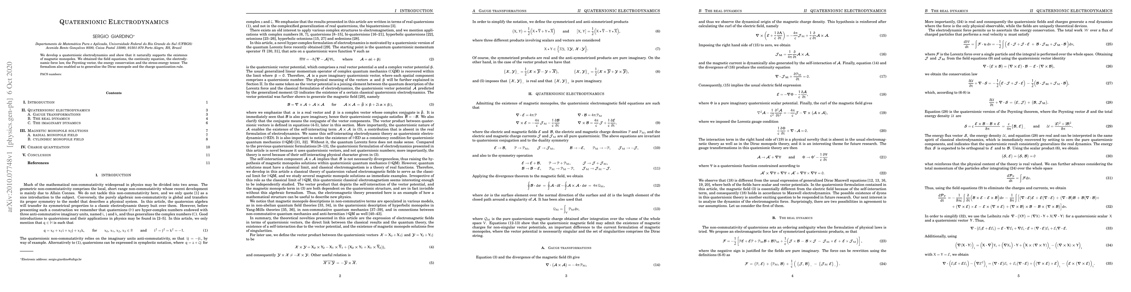 Researchers developed a quaternionic electrodynamics framework that naturally supports magnetic monopoles and generalizes Dirac monopole and charge quantization rule, enabling new insights into the nature of electric and magnetic fields.