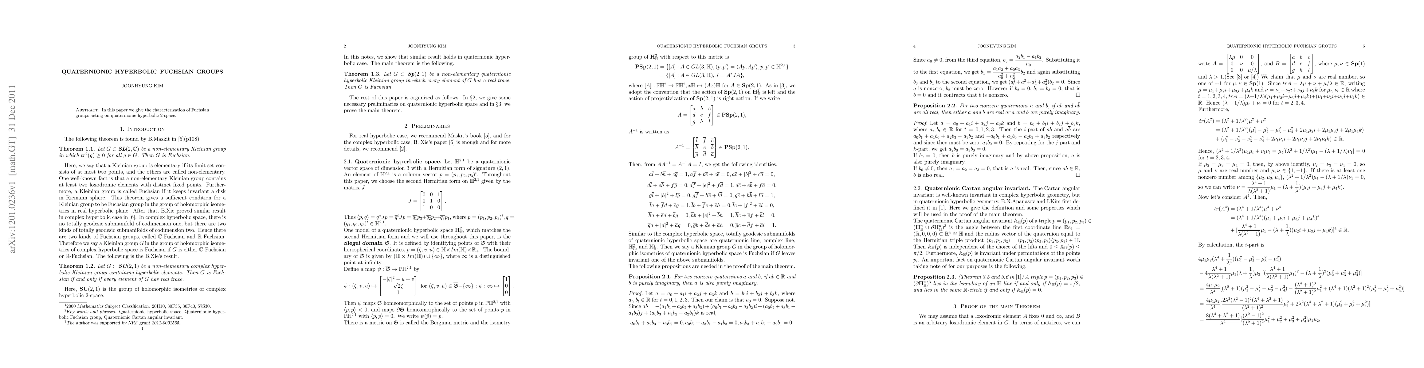 Summary: This paper characterizes Fuchsian groups that act on quaternionic hyperbolic 2-space, providing a detailed understanding of their structure and properties.