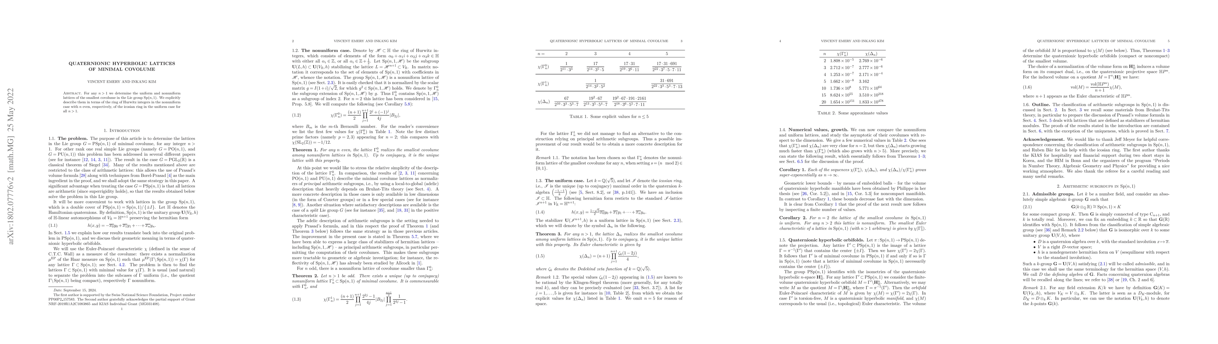 This paper identifies the uniform and nonuniform lattices with minimal covolume in the Lie group Sp(n,1) for n>1, describing them explicitly using Hurwitz integers for n even and the icosian ring for all n>1.