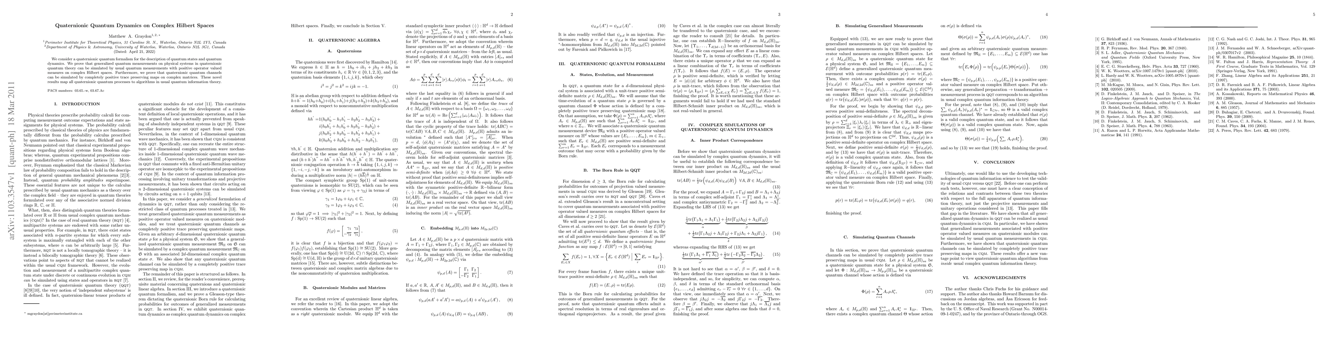 This paper explores a quaternionic quantum formalism, demonstrating that generalized quantum measurements and quaternionic quantum channels can be simulated using standard quantum measurements and maps on complex Hilbert spaces, thus mapping quaternionic quantum processes to conventional quantum information theory algorithms.