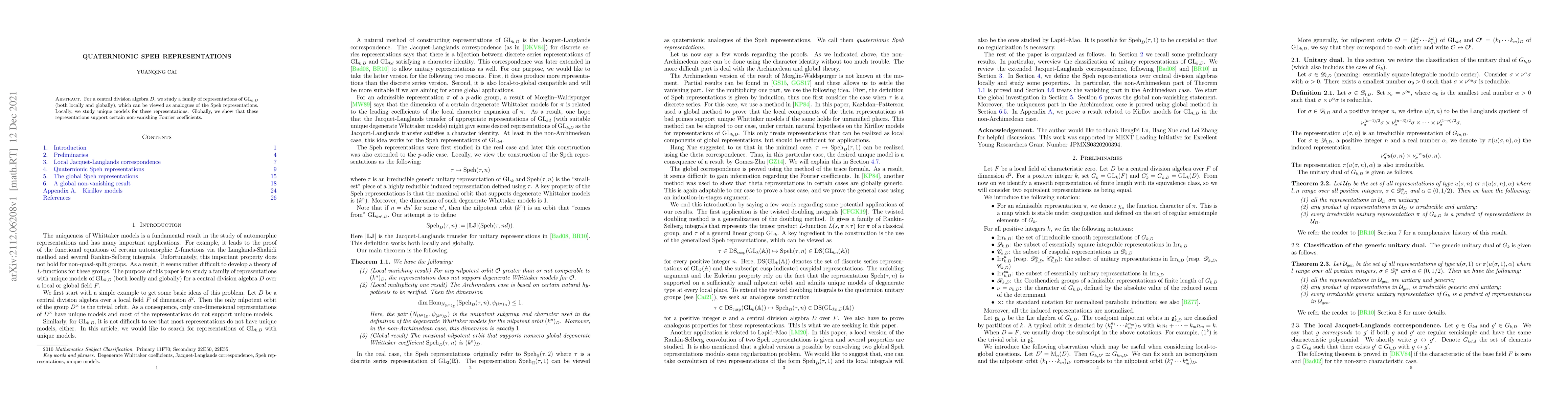 For a central division algebra $D$, we study a family of representations of $\mathrm{GL}_{k,D}$ (both locally and globally), which can be viewed as analogues of the Speh representations. Locally, we study unique models for these representations. Globally, we show that these representations support certain non-vanishing Fourier coefficients.
