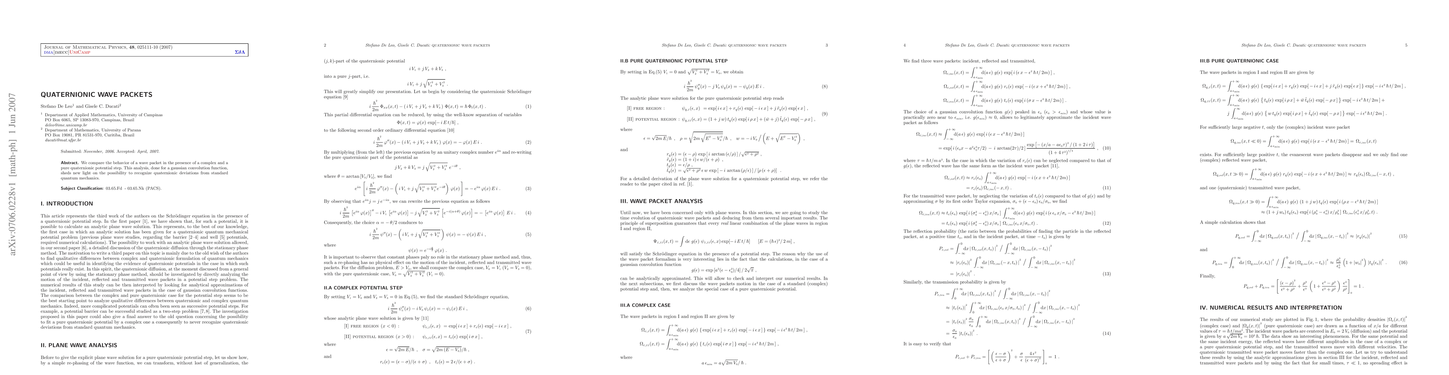 We compare the behavior of a wave packet in the presence of a complex and a pure quaternionic potential step. This analysis, done for a gaussian convolution function, sheds new light on the possibility to recognize quaternionic deviations from standard quantum mechanics.