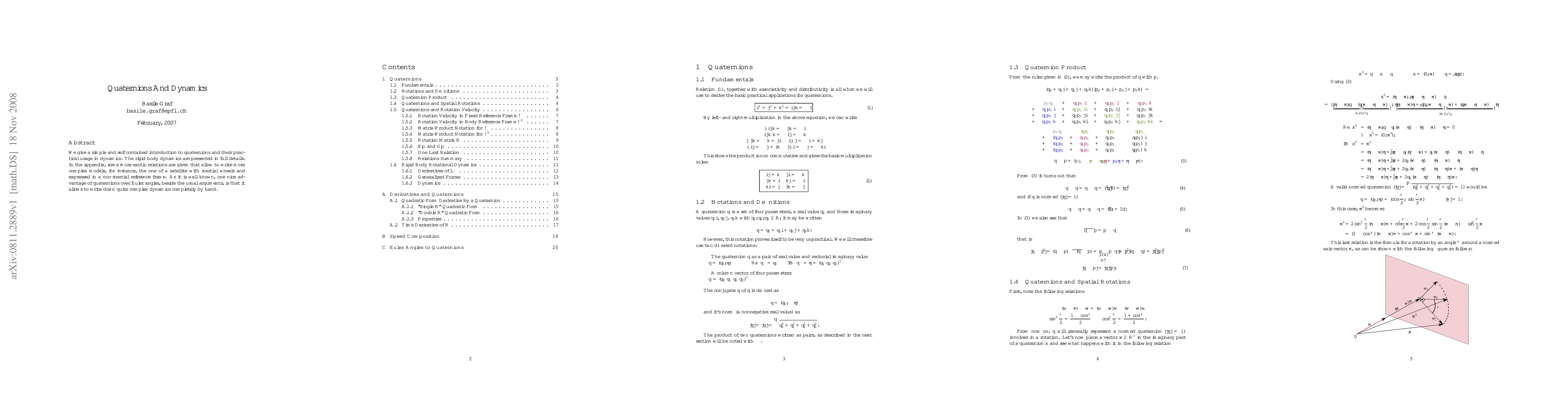 This paper introduces quaternions as a practical tool for dynamics, providing a detailed explanation of rigid body dynamics and showcasing their ability to model complex systems like satellites with inertial wheels in non-inertial reference frames.