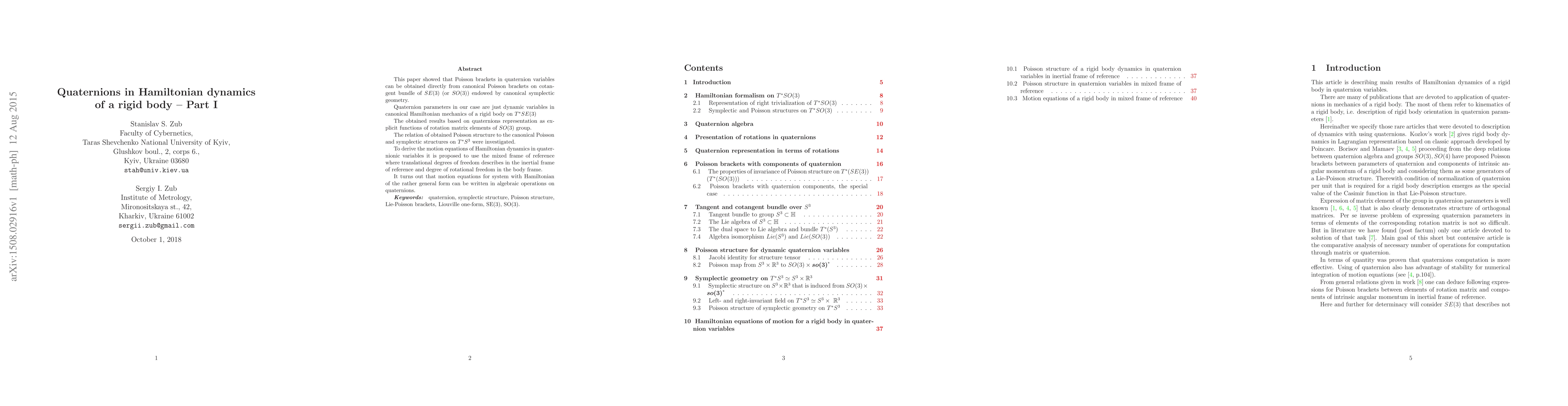 Researchers found that quaternions can be used to represent a rigid body in Hamiltonian dynamics, allowing for motion equations to be written in algebraic operations on quaternions.