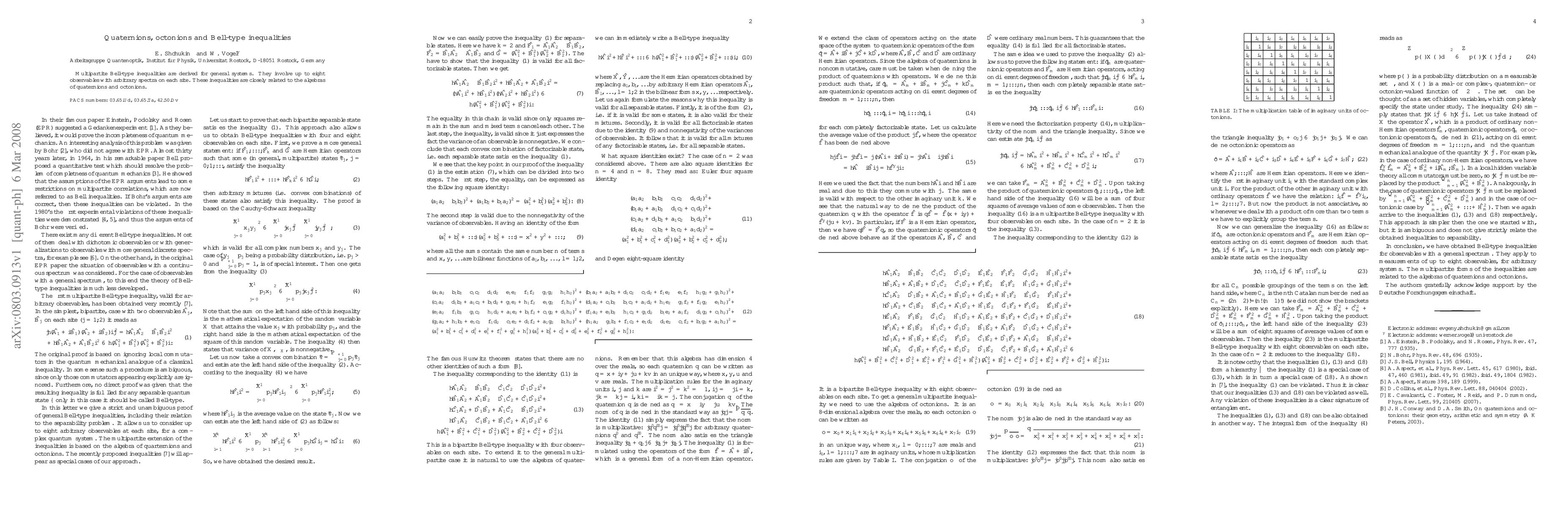 This paper derives multipartite Bell-type inequalities for systems with up to eight observables, highlighting their connection to the algebraic structures of quaternions and octonions. The inequalities generalize the traditional Bell inequalities to more complex, higher-dimensional systems.