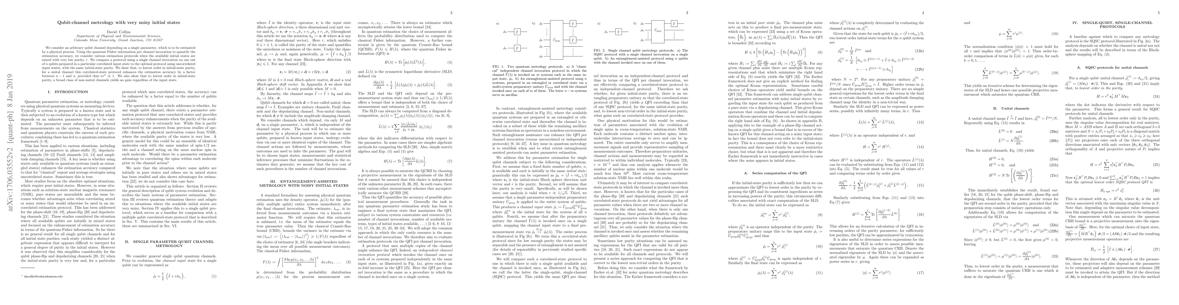We consider an arbitrary qubit channel depending on a single parameter, which is to be estimated by a physical process. Using the quantum Fisher information per channel invocation to quantify the estimation accuracy, we consider various estimation protocols when the available initial states are mixed with very low purity. We compare a protocol using a single channel invocation on one out of $n$ qubits prepared in a particular correlated input state to the optimal protocol using uncorrelated input states, with the same initial state purity. We show that, to lowest order in initial-state purity, for a unital channel this correlated state protocol enhances the estimation accuracy by a factor between $n-1$ and $n.$ We also show that to lowest order in initial-state purity, a broad class of non-unital channels yields no gain regardless of the input state.