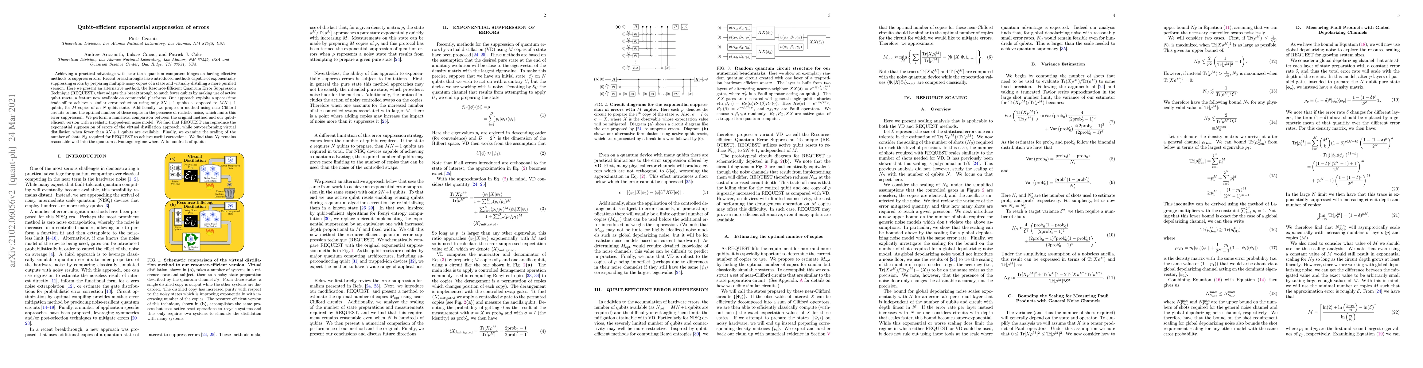 Achieving a practical advantage with near-term quantum computers hinges on having effective methods to suppress errors. Recent breakthroughs have introduced methods capable of exponentially suppressing errors by preparing multiple noisy copies of a state and virtually distilling a more purified version. Here we present an alternative method, the Resource-Efficient Quantum Error Suppression Technique (REQUEST), that adapts this breakthrough to much fewer qubits by making use of active qubit resets, a feature now available on commercial platforms. Our approach exploits a space/time trade-off to achieve a similar error reduction using only $2N+1$ qubits as opposed to $MN+1$ qubits, for $M$ copies of an $N$ qubit state. Additionally, we propose a method using near-Clifford circuits to find the optimal number of these copies in the presence of realistic noise, which limits this error suppression. We perform a numerical comparison between the original method and our qubit-efficient version with a realistic trapped-ion noise model. We find that REQUEST can reproduce the exponential suppression of errors of the virtual distillation approach, while out-performing virtual distillation when fewer than $3N+1$ qubits are available. Finally, we examine the scaling of the number of shots $N_S$ required for REQUEST to achieve useful corrections. We find that $N_S$ remains reasonable well into the quantum advantage regime where $N$ is hundreds of qubits.