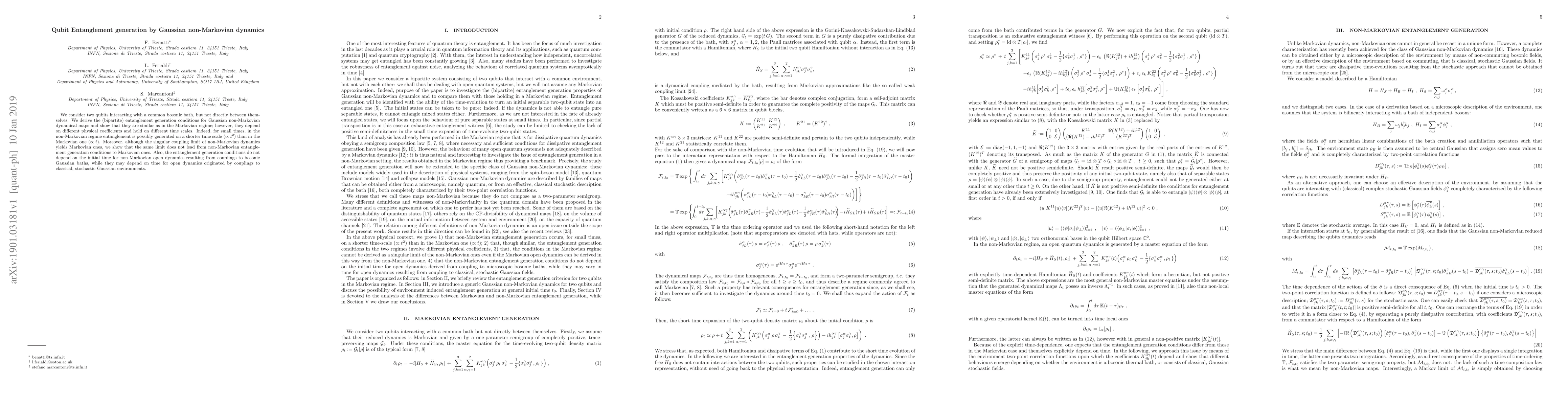 This paper investigates qubit entanglement generation through Gaussian non-Markovian dynamics, showing that entanglement can be generated more quickly ($\propto t^2$) compared to the Markovian regime ($\propto t$), despite non-Markovian dynamics converging to Markovian ones in the singular coupling limit. The study highlights differences in entanglement conditions based on the environment type.