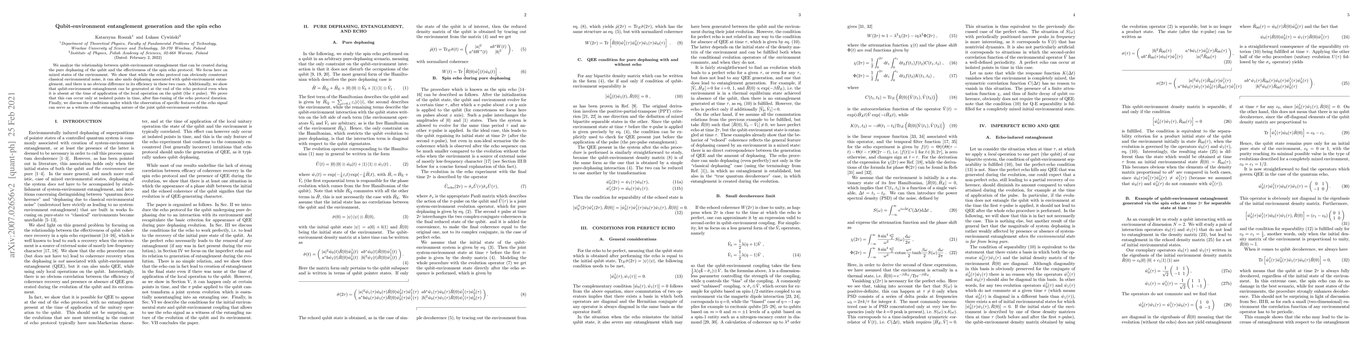 This paper explores how qubit-environment entanglement generated during qubit dephasing affects spin echo protocols, demonstrating that the echo protocol can counteract both classical noise and dephasing-induced entanglement. It also reveals that entanglement can form at specific times after fine-tuning the echo protocol, and discusses how echo signal features can indicate the entangling evolution of qubit-environment systems.