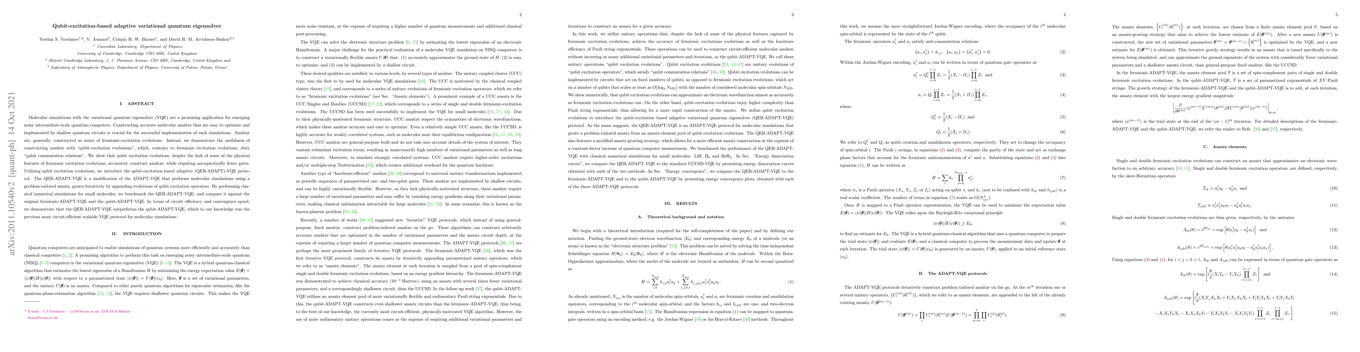 This paper proposes a qubit-excitation-based adaptive variational quantum eigensolver (VQE) protocol, QEB-ADAPT-VQE, which constructs efficient quantum circuits for molecular simulations using qubit commutation relations. The new approach outperforms previous methods in terms of circuit efficiency and convergence speed.
