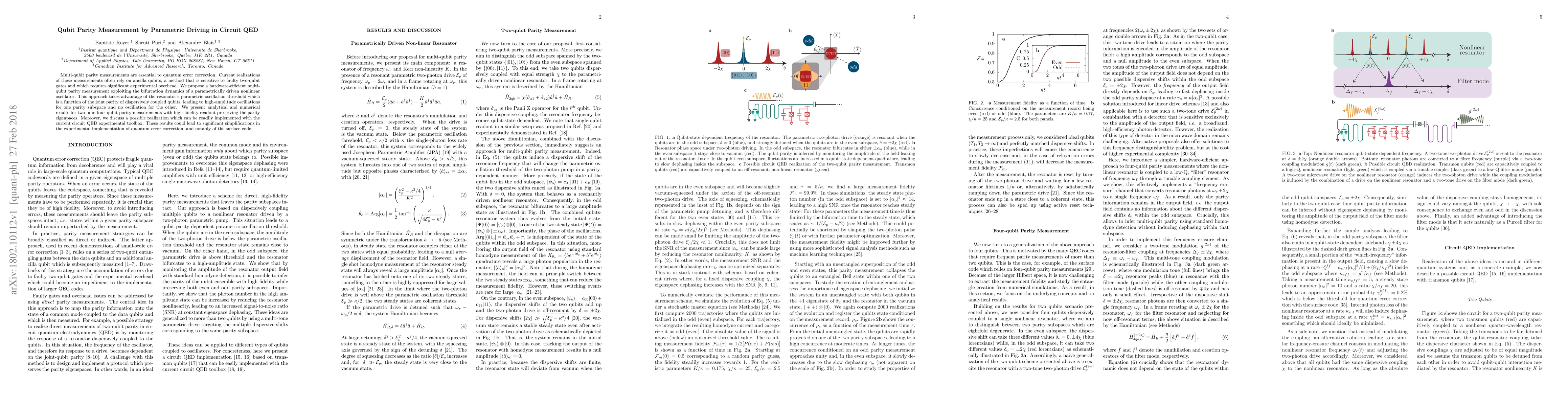 The paper introduces a novel approach for multi-qubit parity measurements using parametric driving in circuit QED, which avoids the need for ancilla qubits and offers hardware efficiency.