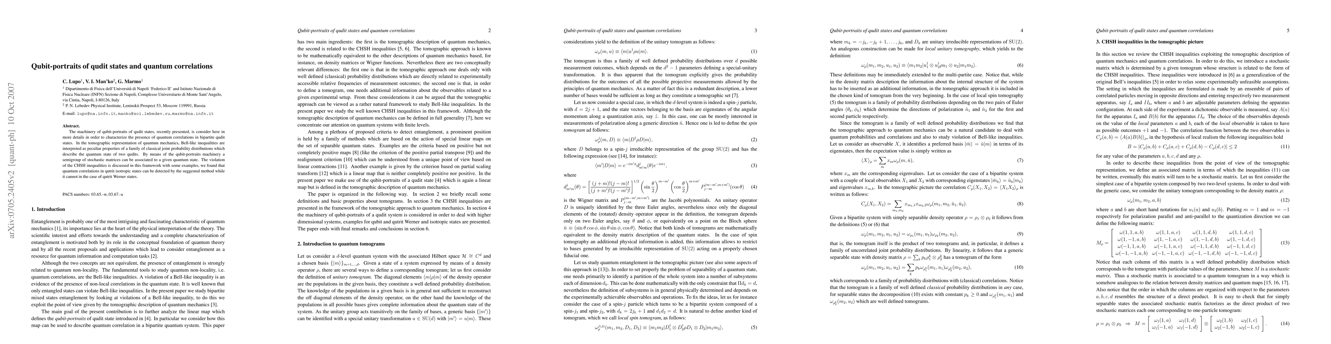 This paper delves into the qubit-portraits framework to characterize quantum correlations in bipartite qudit states, using a semigroup of stochastic matrices to represent quantum states. It demonstrates the detection of quantum correlations in qutrit isotropic states but not in qutrit Werner states, illustrating the violation of CHSH inequalities within this framework.