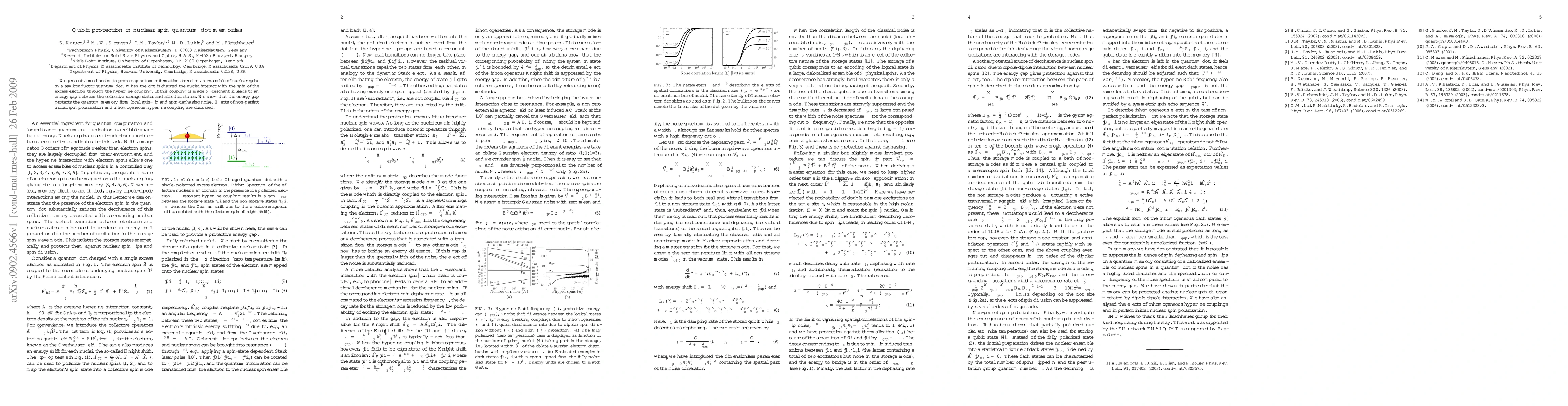 This paper proposes a method to safeguard quantum information in nuclear spins within semiconductor quantum dots by creating an energy gap through off-resonant hyperfine coupling, which shields the memory from local noise and addresses issues of imperfect initial spin polarization and inhomogeneous coupling.