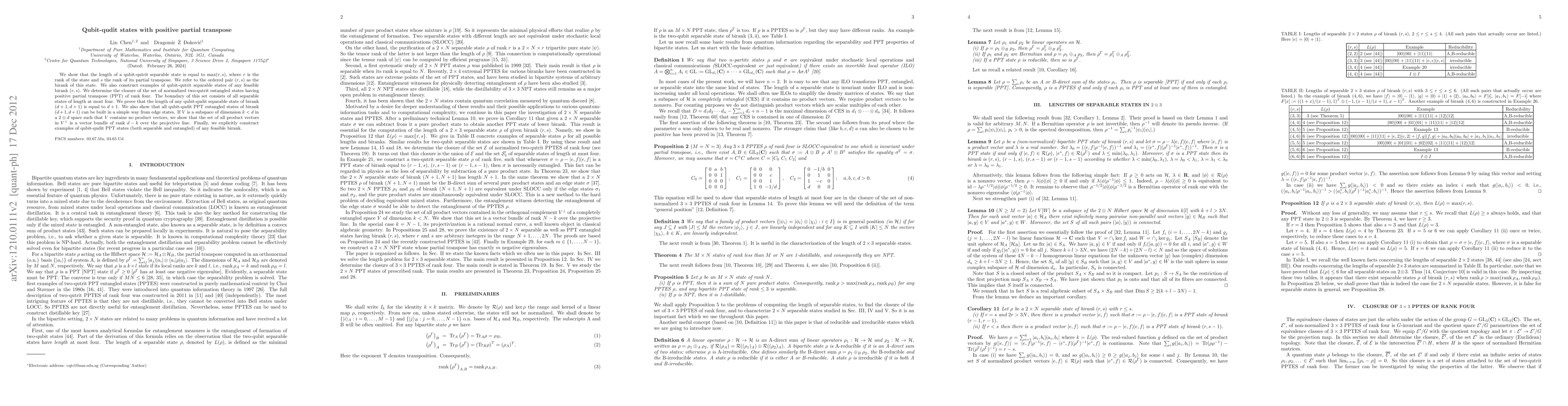 This paper investigates qubit-qudit separable states with positive partial transpose (PPT), establishing that their length is equal to the maximum of their birank components (r,s). It constructs examples of such states for any feasible birank and determines the closure of entangled two-qutrit states of rank four with PPT.