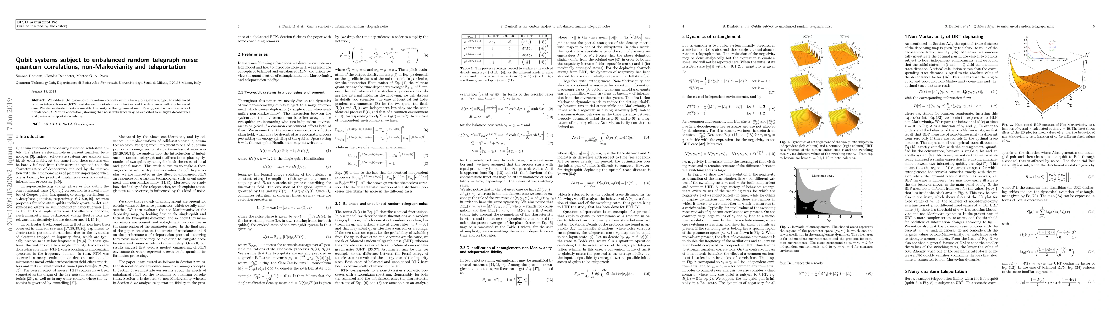 This paper investigates the dynamics of quantum correlations in a two-qubit system under unbalanced random telegraph noise, comparing it to balanced noise scenarios. It evaluates quantum non-Markovianity and demonstrates that noise imbalance enhances teleportation fidelity by mitigating decoherence.