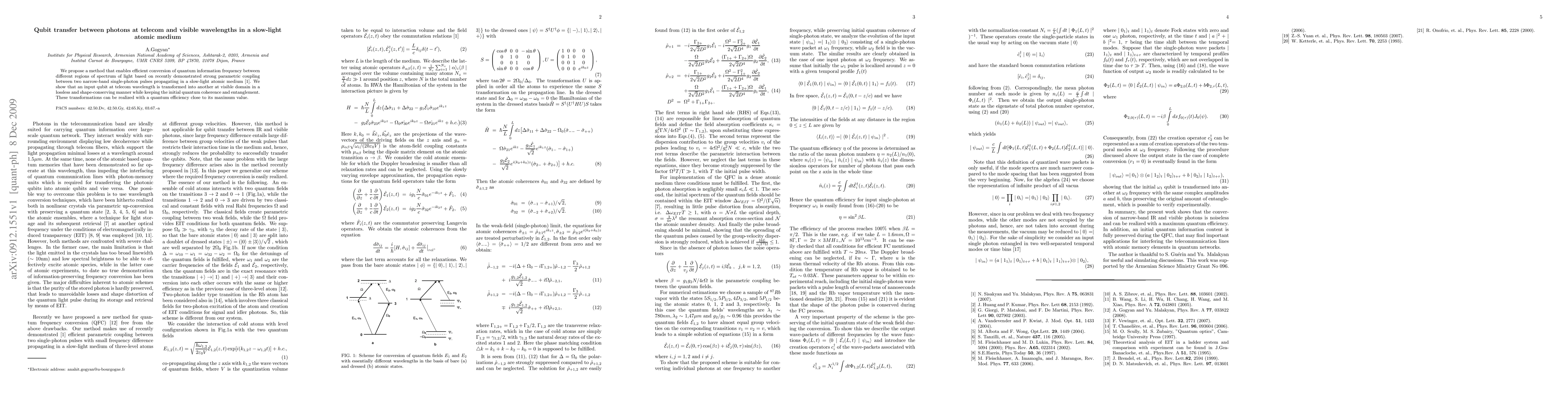 Researchers developed a method to convert quantum information between telecom and visible wavelengths using a slow-light atomic medium, preserving coherence and entanglement with high efficiency.
