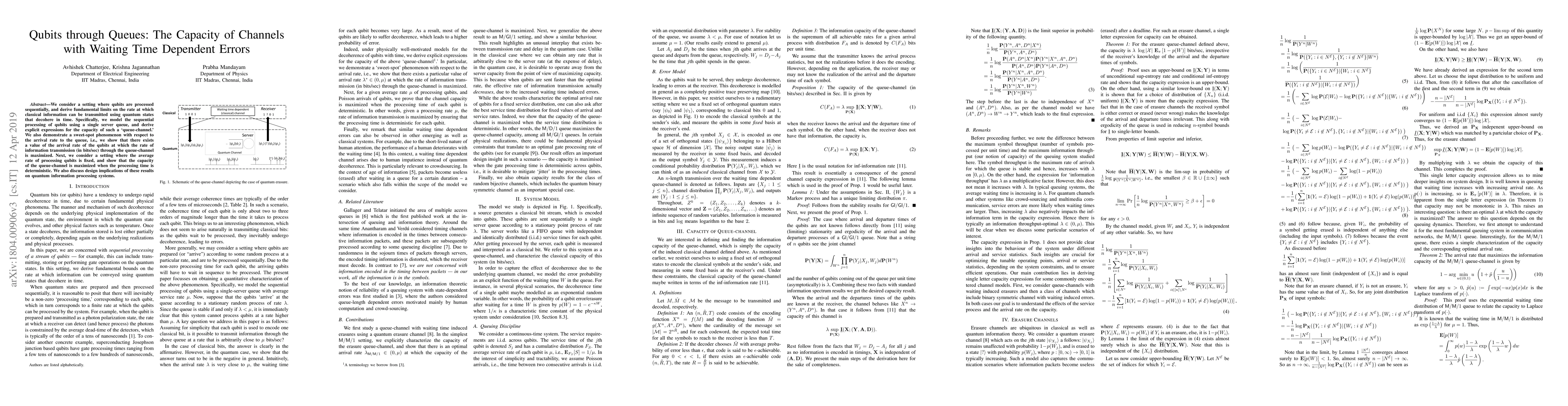 We consider a setting where qubits are processed sequentially, and derive fundamental limits on the rate at which classical information can be transmitted using quantum states that decohere in time. Specifically, we model the sequential processing of qubits using a single server queue, and derive explicit expressions for the capacity of such a `queue-channel.' We also demonstrate a sweet-spot phenomenon with respect to the arrival rate to the queue, i.e., we show that there exists a value of the arrival rate of the qubits at which the rate of information transmission (in bits/sec) through the queue-channel is maximized. Next, we consider a setting where the average rate of processing qubits is fixed, and show that the capacity of the queue-channel is maximized when the processing time is deterministic. We also discuss design implications of these results on quantum information processing systems.