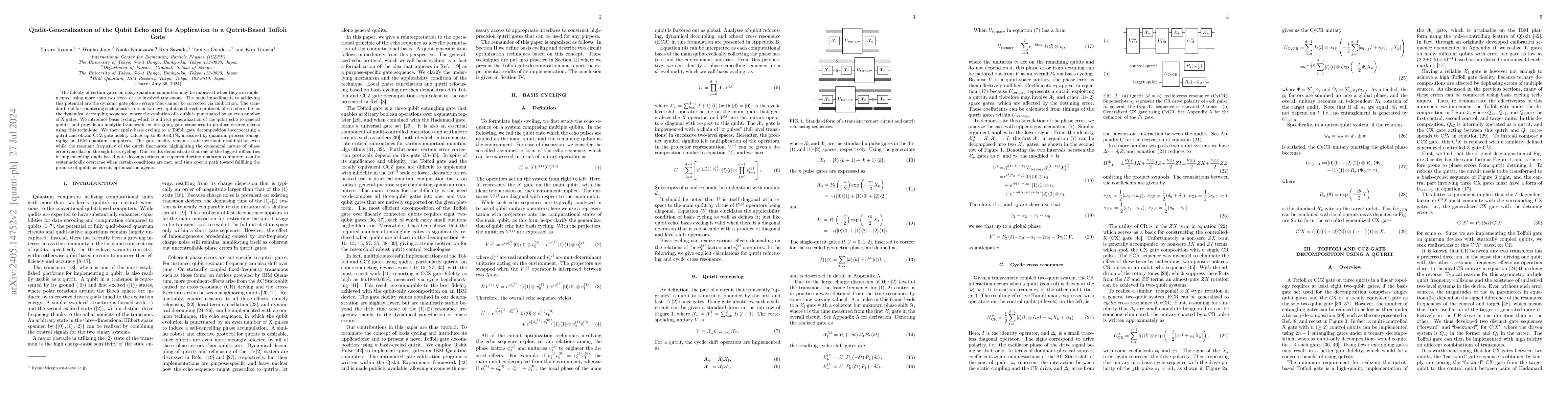 This paper proposes a qudit generalization of the qubit echo protocol called basis cycling to improve gate fidelity on noisy quantum computers, demonstrating a stable CCZ gate fidelity of 93.8 ± 0.1 on an IBM quantum computer. This method effectively cancels dynamic gate phase errors, showing potential for optimizing qudit-based gate decompositions.