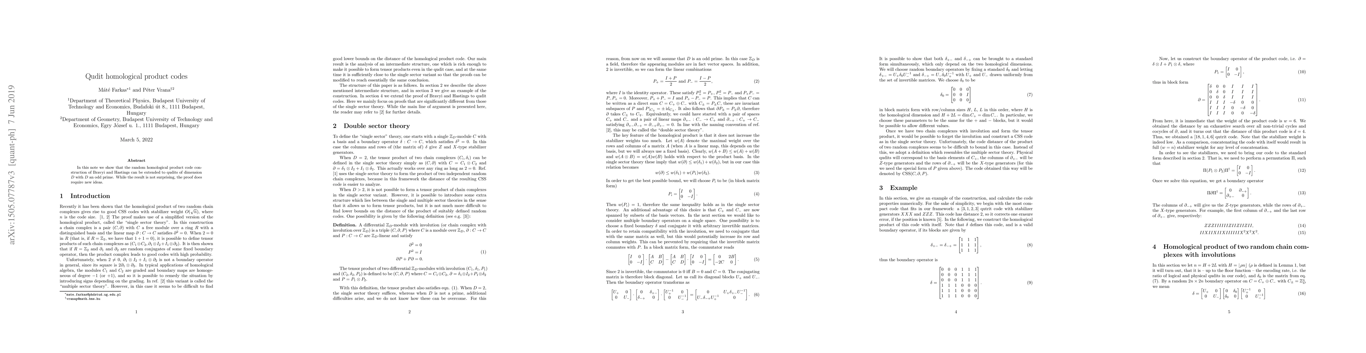 The research extends the random homological product code construction for qudits of dimension D, where D is an odd prime, using new proof ideas.