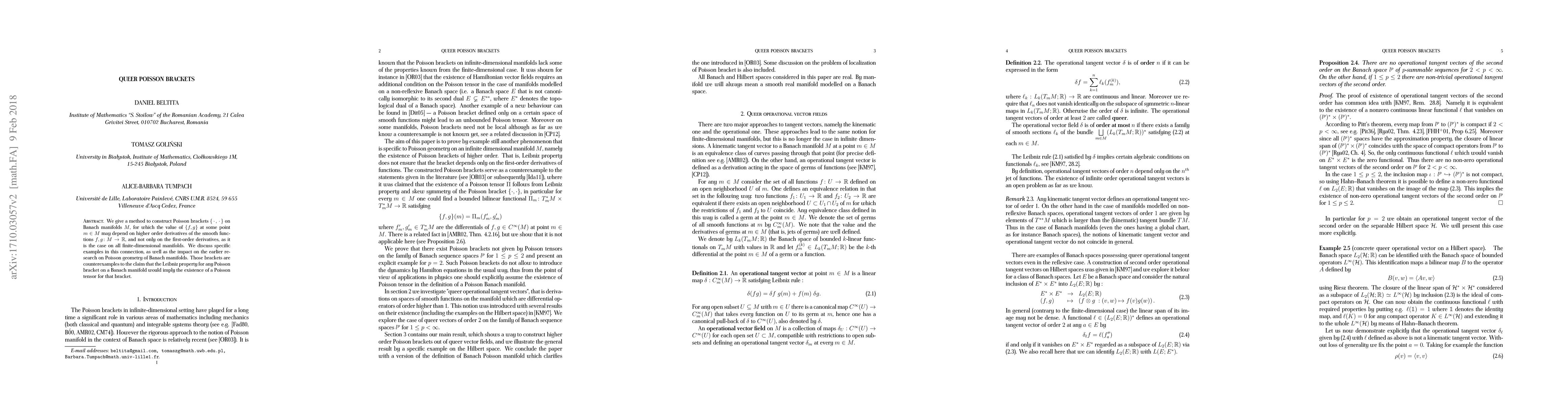 This paper introduces a novel method to construct Poisson brackets on Banach manifolds that depend on higher-order derivatives of the involved functions, challenging traditional finite-dimensional Poisson geometry. It provides counterexamples that refute the assumption that the Leibniz property necessitates the existence of a Poisson tensor.