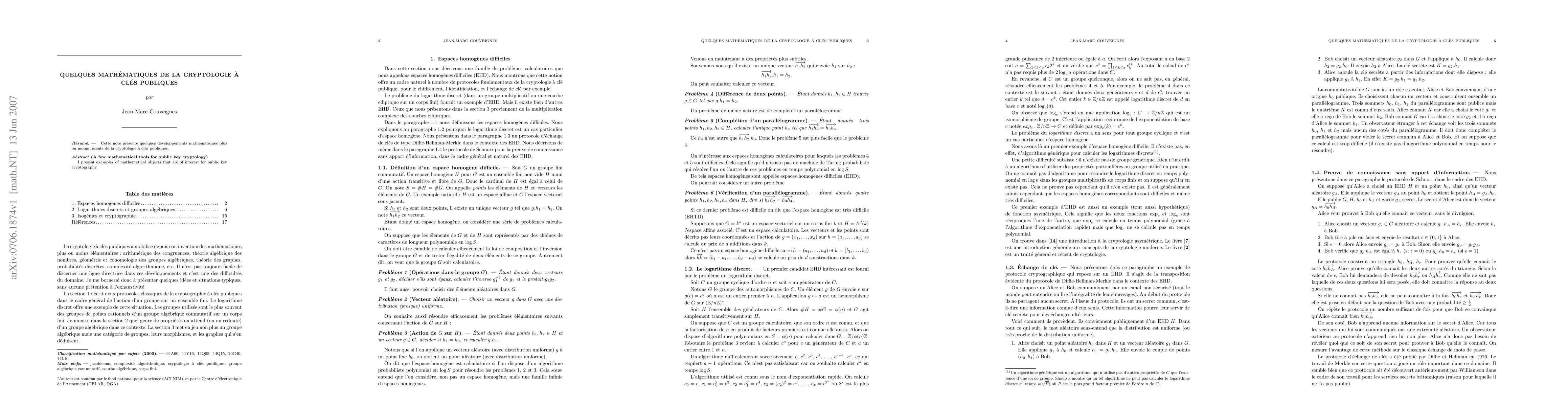 I present examples of mathematical objects that are of interest for public key cryptography. Text for the Journ\'ee Annuelle 2007 of the SMF.