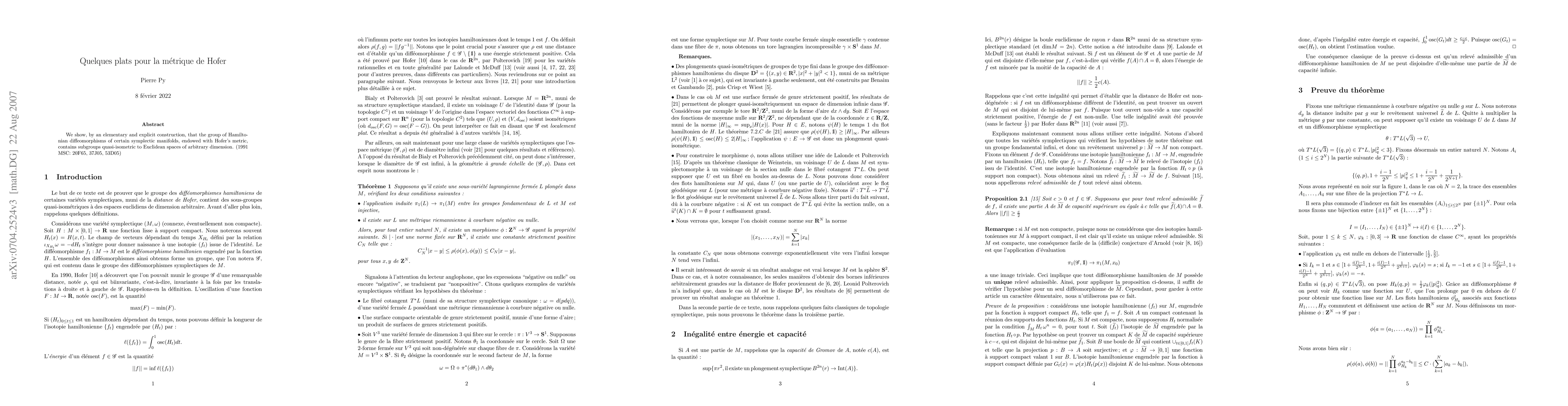 We show, by an elementary and explicit construction, that the group of Hamiltonian diffeomorphisms of certain symplectic manifolds, endowed with Hofer's metric, contains subgroups quasi-isometric to Euclidean spaces of arbitrary dimension.