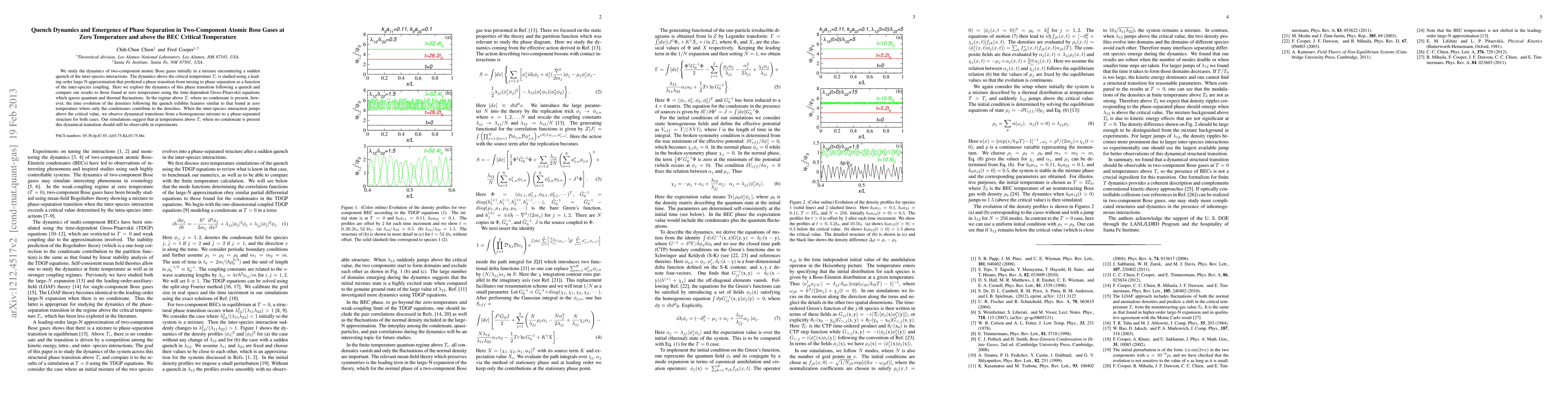 We study the dynamics of two-component atomic Bose gases initially in a mixture encountering a sudden quench of the inter-species interactions. The dynamics above the critical temperature $T_c$ is studied using a leading order large-N approximation that predicted a phase transition from mixing to phase separation as a function of the inter-species coupling. Here we explore the dynamics of this phase transition following a quench and compare our results to those found at zero temperature using the time-dependent Gross-Pitaevskii equations which ignore quantum and thermal fluctuations. In the regime above $T_c$ where no condensate is present, however, the time evolution of the densities following the quench exhibits features similar to that found at zero temperature where only the condensates contribute to the densities. When the inter-species interaction jumps above the critical value, we observe dynamical transitions from a homogeneous mixture to a phase-separated structure for both cases. Our simulations suggest that at temperatures above $T_c$ where no condensate is present this dynamical transition should still be observable in experiments.