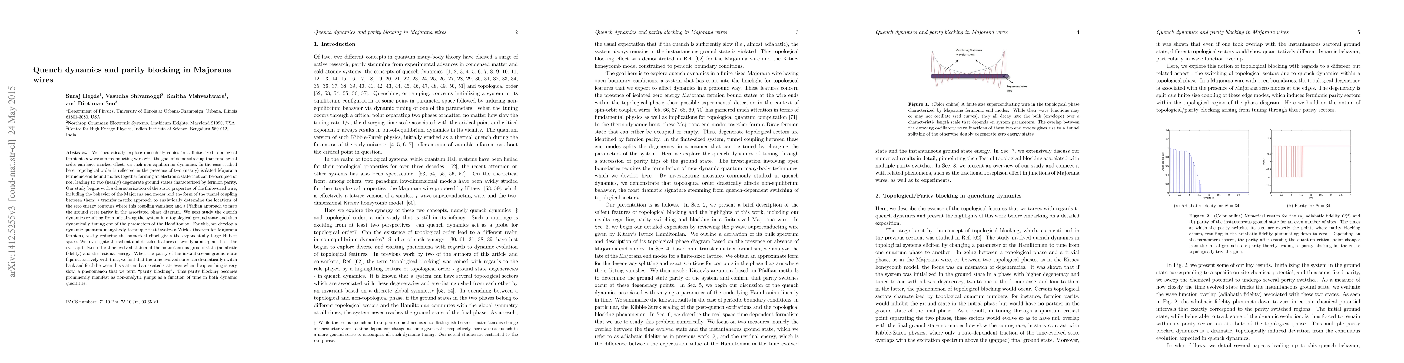 This paper investigates the quench dynamics in a topological p-wave superconducting wire featuring Majorana fermions, revealing that topological order leads to "parity blocking" phenomena during slow parameter tuning. The study employs advanced analytical and numerical techniques to explore the effects of fermion parity on the system's dynamic response.