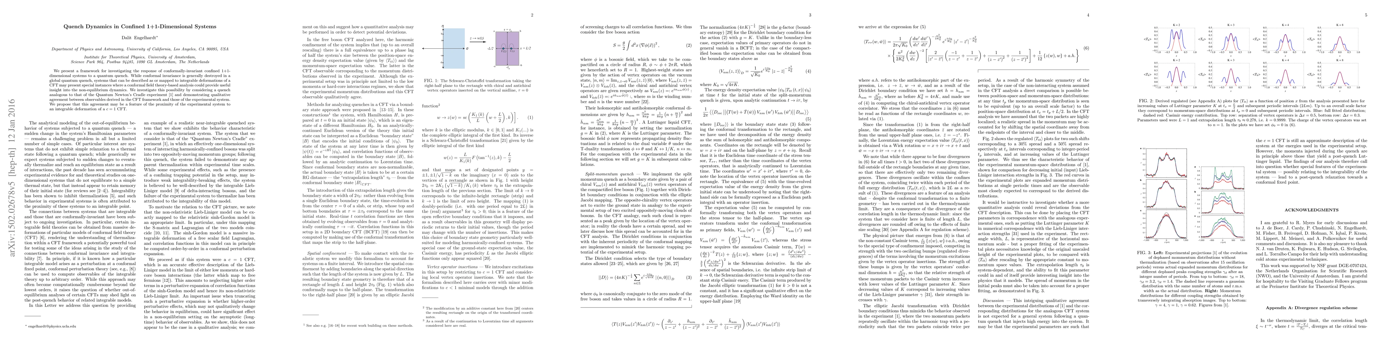 This paper develops a framework for studying the response of conformally-invariant confined 1+1-dimensional systems to quantum quenches, showing that integrable deformations of conformal field theories can provide insights into the non-equilibrium dynamics, as demonstrated by a comparison with the Quantum Newton's Cradle experiment.
