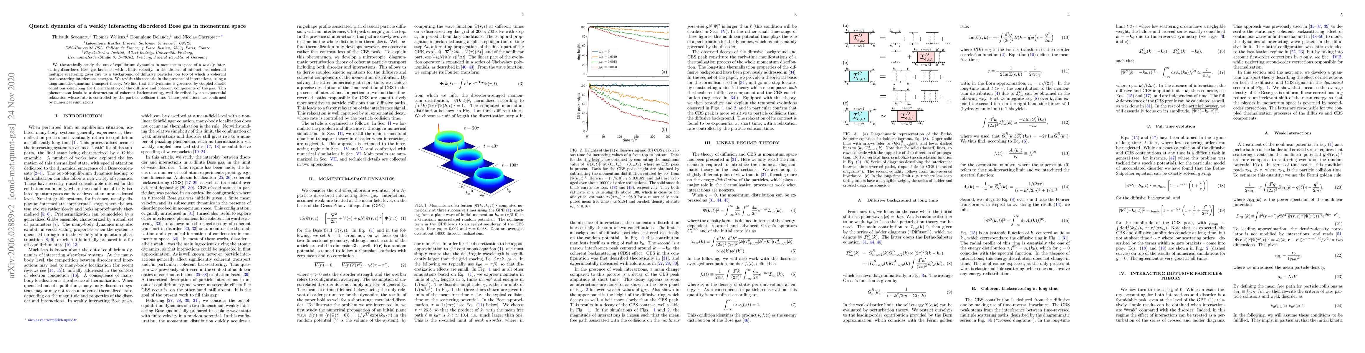 This paper investigates the momentum space dynamics of a weakly interacting disordered Bose gas, revealing that interactions disrupt coherent backscattering through thermalization processes described by coupled kinetic equations, leading to an exponential relaxation rate dependent on collision time, verified by numerical simulations.