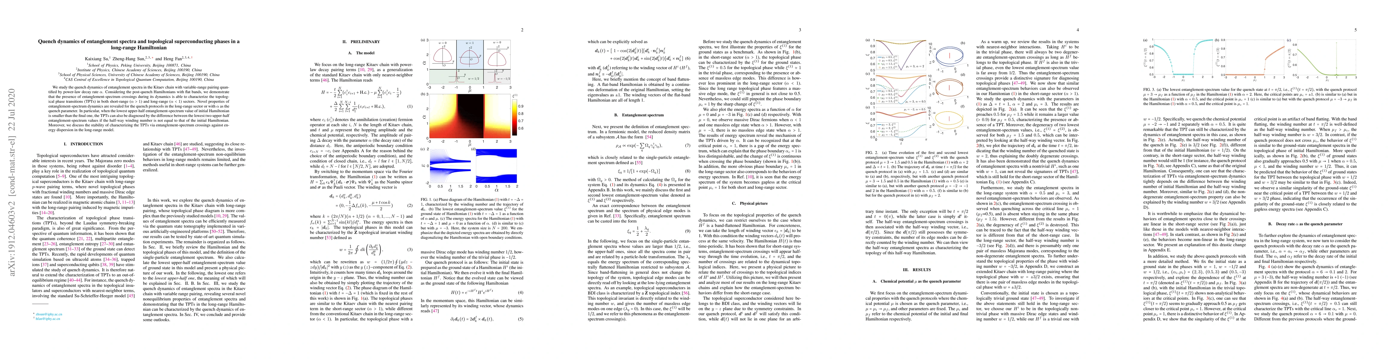 The paper presents a detailed analysis of entanglement-spectrum dynamics in long-range Kitaev chains, demonstrating the characterization of TPTs through entanglement-spectrum crossings and differences in entanglement-spectrum values, applicable even without flat bands in the post-quench Hamiltonian.