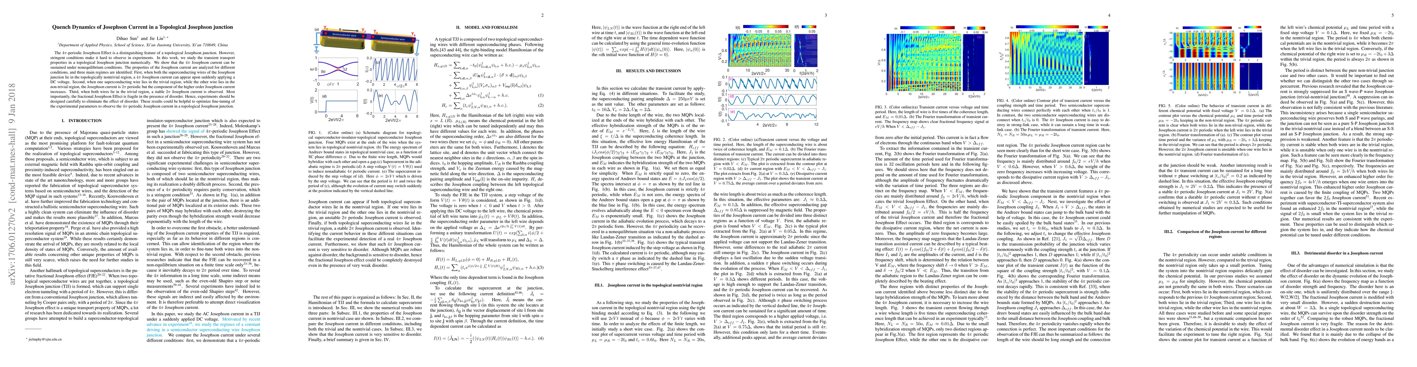 This paper numerically investigates the transient transport properties of a topological Josephson junction, demonstrating that $4\pi$ Josephson current can persist for several microseconds under suitable conditions. It identifies three regimes of Josephson current behavior based on the topological regions of the superconducting wires.