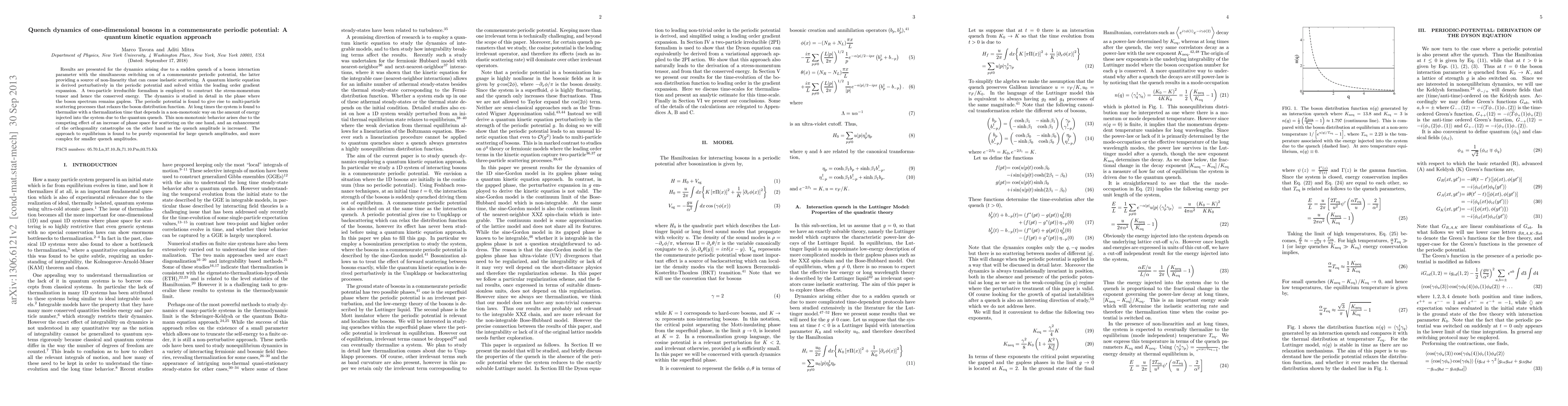 Results are presented for the dynamics arising due to a sudden quench of a boson interaction parameter with the simultaneous switching on of a commensurate periodic potential, the latter providing a source of non-linearity that can cause inelastic scattering. A quantum kinetic equation is derived perturbatively in the periodic potential and solved within the leading order gradient expansion. A two-particle irreducible formalism is employed to construct the stress-momentum tensor and hence the conserved energy. The dynamics is studied in detail in the phase where the boson spectrum remains gapless. The periodic potential is found to give rise to multi-particle scattering processes that relaxes the boson distribution function. At long times the system is found to thermalize with a thermalization time that depends in a non-monotonic way on the amount of energy injected into the system due to the quantum quench. This non-monotonic behavior arises due to the competing effect of an increase of phase space for scattering on the one hand, and an enhancement of the orthogonality catastrophe on the other hand as the quench amplitude is increased. The approach to equilibrium is found to be purely exponential for large quench amplitudes, and more complex for smaller quench amplitudes.