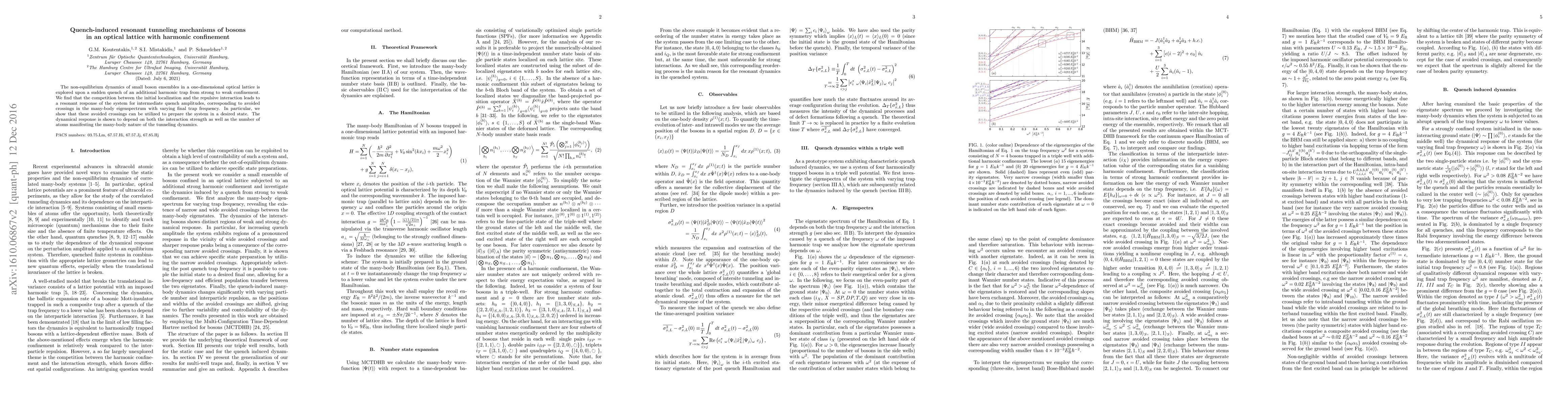 The non-equilibrium dynamics of small boson ensembles in a one-dimensional optical lattice is explored upon a sudden quench of an additional harmonic trap from strong to weak confinement. We find that the competition between the initial localization and the repulsive interaction leads to a resonant response of the system for intermediate quench amplitudes, corresponding to avoided crossings in the many-body eigenspectrum with varying final trap frequency. In particular, we show that these avoided crossings can be utilized to prepare the system in a desired state. The dynamical response is shown to depend on both the interaction strength as well as the number of atoms manifesting the many-body nature of the tunneling dynamics.