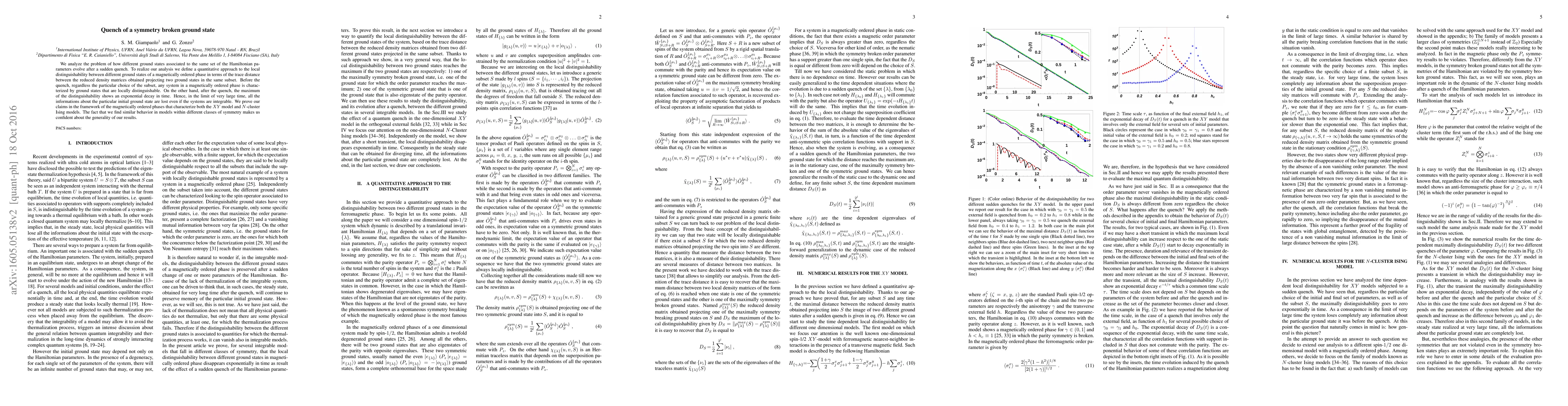 This research explores how various ground states of a magnetic system, sharing the same Hamiltonian parameters, evolve after an abrupt change (quench). The study introduces a method to quantify local distinguishability between these ground states using trace distance of reduced density matrices. It reveals that, pre-quench, all ground states are locally distinguishable, but post-quench, their distinguishability decays exponentially over time, erasing initial state information even in integrable systems. The findings apply broadly to magnetically ordered phases in XY models and N-cluster Ising models.
