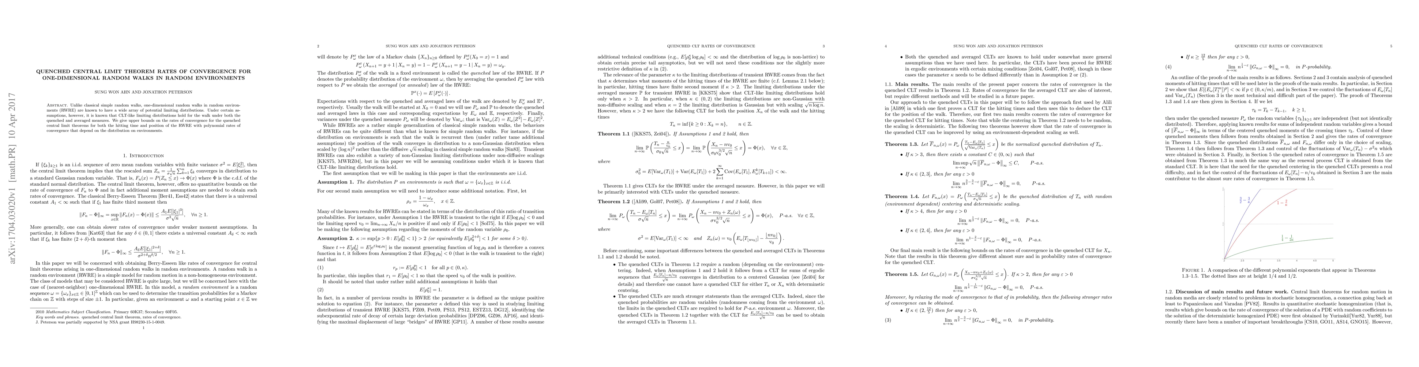 This paper investigates the convergence rates of the quenched central limit theorem for one-dimensional random walks in random environments. It provides upper bounds on the rates of convergence for both the hitting time and position of the walk, showing polynomial dependency on the distribution of environments.