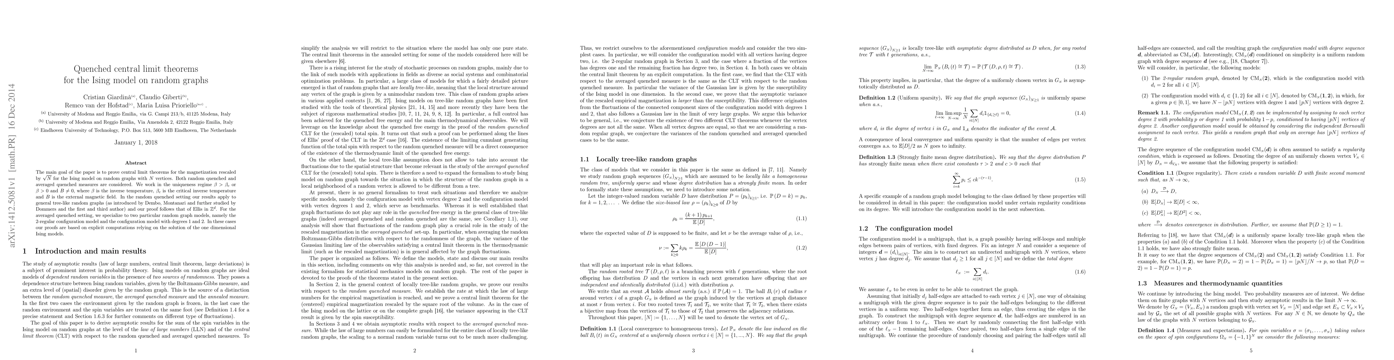This paper proves central limit theorems for the magnetization of the Ising model on random graphs, focusing on both random quenched and averaged quenched measures. The study is conducted in the uniqueness regime, and results apply to tree-like random graphs and specific models like the 2-regular configuration model.