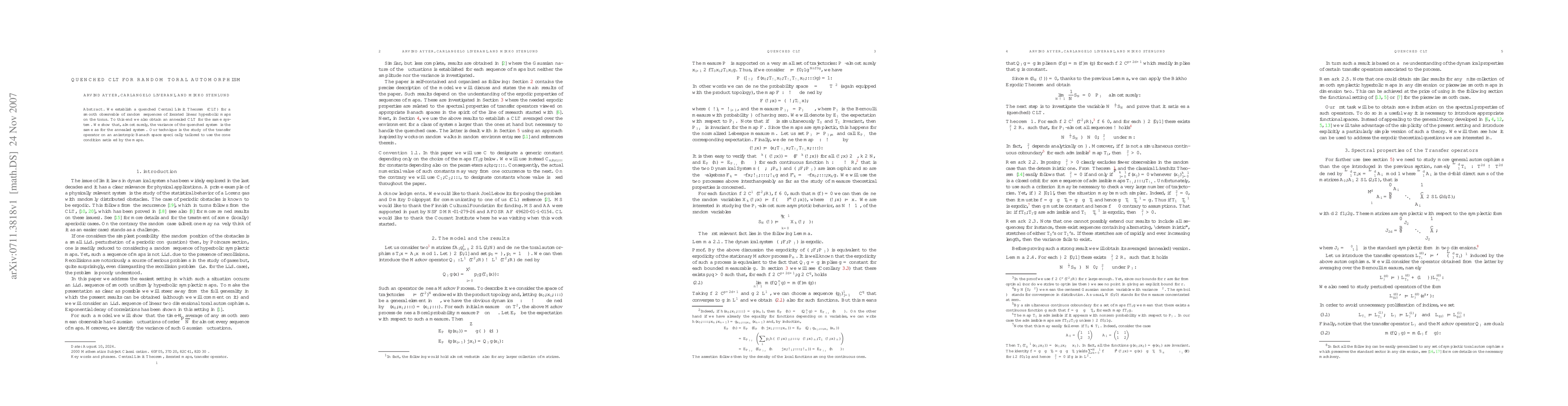 Summary: This paper establishes a quenched Central Limit Theorem for a smooth observable in random iterated linear hyperbolic maps on the torus, proving that the variance of the quenched system matches that of the annealed system, using a tailored transfer operator on an anisotropic Banach space.