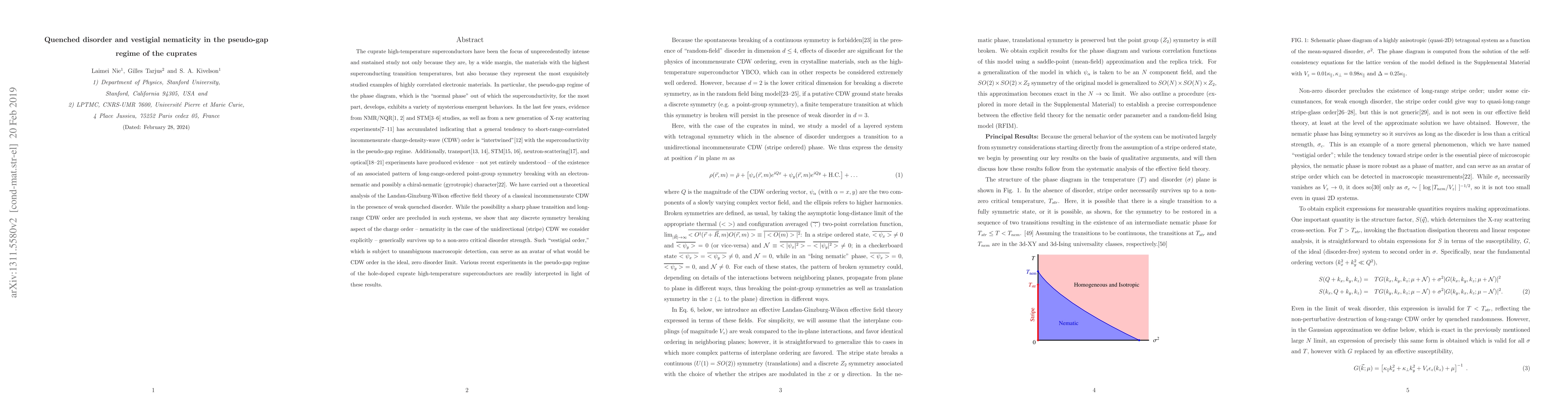 This paper explores the Landau-Ginzburg-Wilson theory of a classical incommensurate charge density wave (CDW) under weak quenched disorder, demonstrating that while long-range CDW order is precluded, "vestigial nematicity" persists up to a critical disorder strength, providing a detectable signature of CDW order in the pseudo-gap regime of cuprate superconductors.