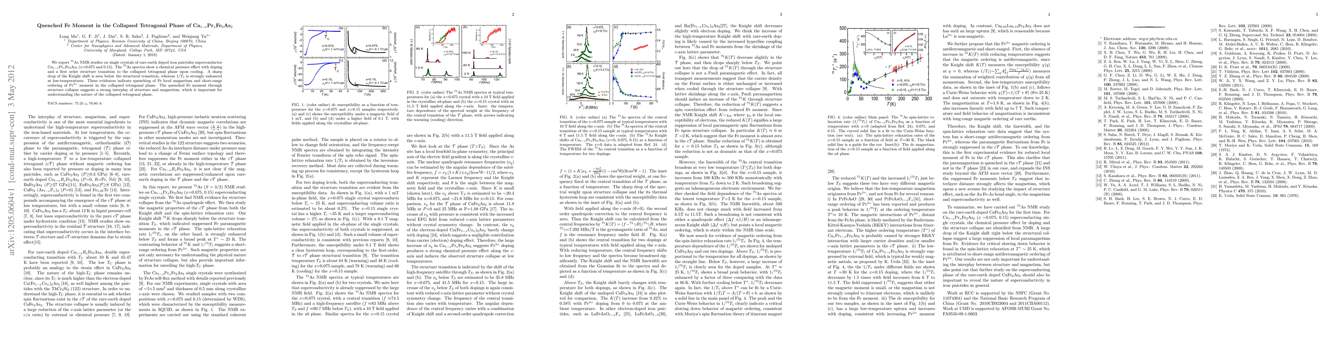 This study uses $^{75}$As NMR to investigate the structural and magnetic properties of Ca$_{1-x}$Pr$_{x}$Fe$_2$As$_2$ in its collapsed tetragonal phase. The results show a quenching of Fe local magnetism and enhanced $1/T_1$ at low temperatures, indicating a strong interplay between structural and magnetic phases.